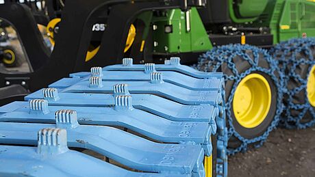 pewag bluetrack flow wide biedt bijzondere bescherming voor bodem en banden, is stabiel dankzij het brede oppervlak en staat voor maximale bodembescherming. De bosbouwtrack is met name geschikt voor kwetsbare en gevoelige ondergronden, omdat het grotere oppervlak voorkomt dat de machine wegzinkt, zelfs bij grote lasten.